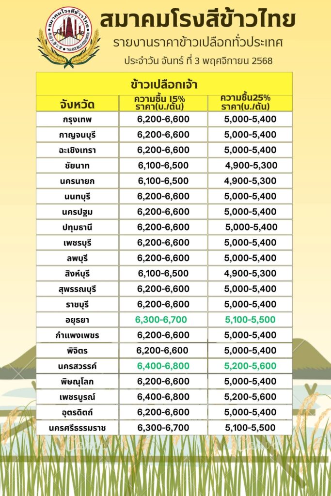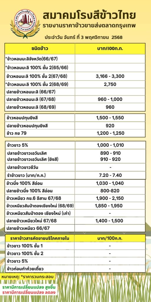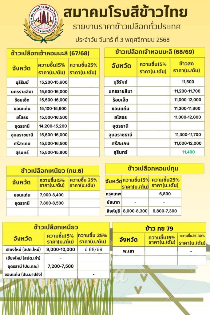 3 พฤศจิกายน 2025 webmaster ราคาข้าว
